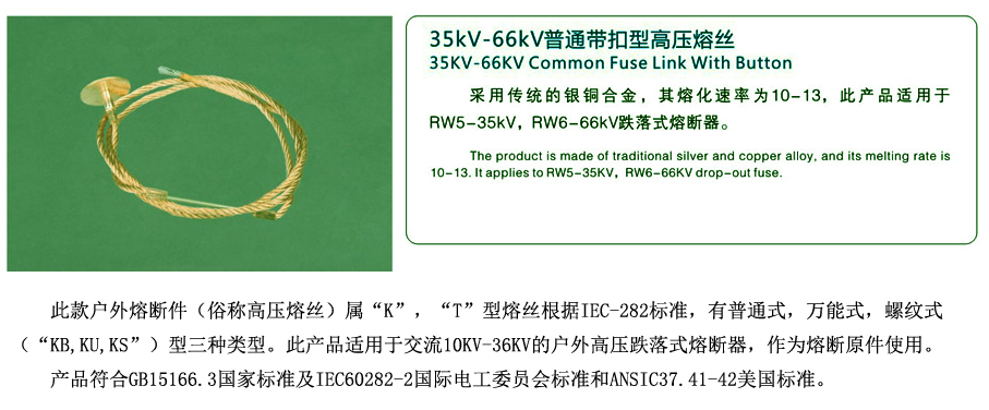 35KV-66KV普通帶扣型高壓熔絲(sī)