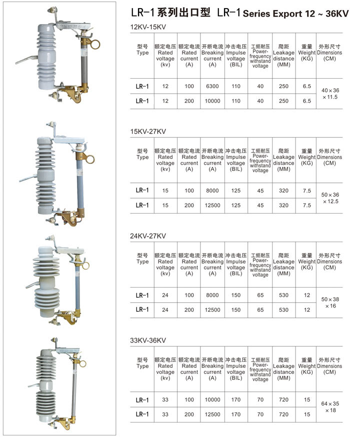 LR-1係(xì)列出口型跌落式熔斷器