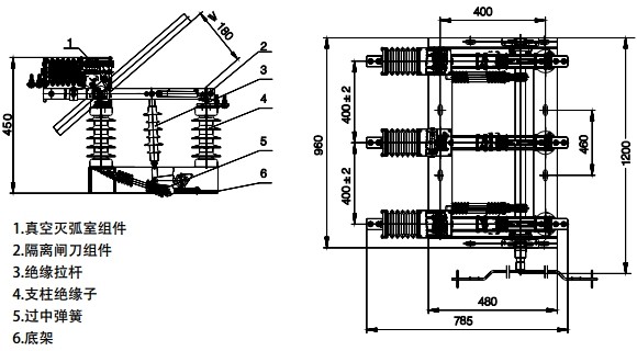 戶外高壓真(zhēn)空負荷開關是由(yóu)隔離閘刀、真空滅弧室及操作機構等部件組成。采用(yòng)真空滅弧室原理(lǐ),具有滅弧能力強,性能可靠,壽命長,體積小,無爆炸危險,不(bú)汙染等優點。配套(tào)相(xiàng)應的真空負荷開關可用於電力、冶金、礦山、化工等(děng)部門的輸配電係統中,作控製設備用,特別適合需頻繁操作的場所。